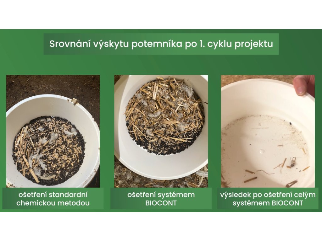 - K vyhodnocení účinnosti lze použít speciální lapač na potemníka stájového Picusan trap.